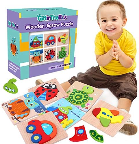 6 Pack Wood Jigsaw Puzzles, Wood Color Shapes Puzzles for Little toddlers…