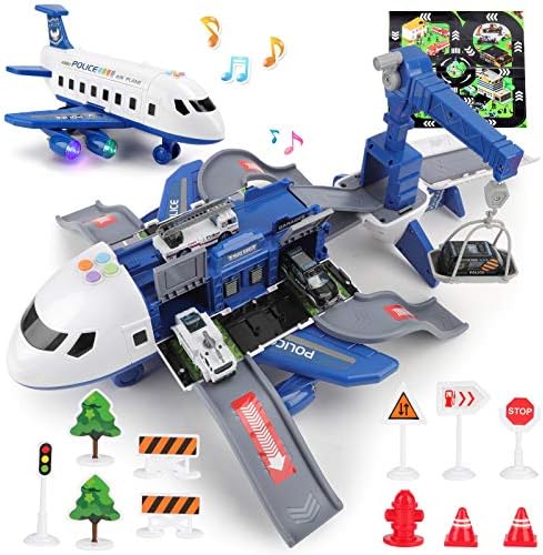 【Plentiful Automobile Toys & Aircraft Play Set 】Comprises 1 massive shipping shipment aircraft,4 Mini police vehicles,parking scene recreation with stickers,32.6*22.4 inch play mat and street indicators and many others.Kids can be told the visitors regulations and street protection wisdom via simulating actual visitors stipulations.