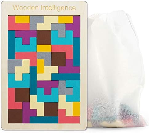 AUUGUU Wood Tetris Puzzle for Youngsters and Adults – Herbal Basswood Tan…