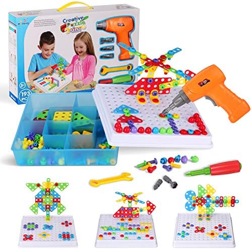 >>> Inventive Mosaic Drill Set — This toy set comprises 4 other colours and shapes of mosaic items, in addition to 5 other colours of screws and mushroom nails. Youngsters can use screws to mend the mosaic items at the puzzle board to create quite a lot of patterns, reminiscent of: helicopter, Trains, vegetation, lions and different animals.