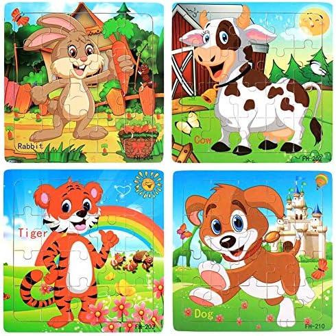 【 Contains 】Set of four jigsaw puzzles for Rabbit,Livestock,Tiger,Canine theme children puzzle(20 piece every).