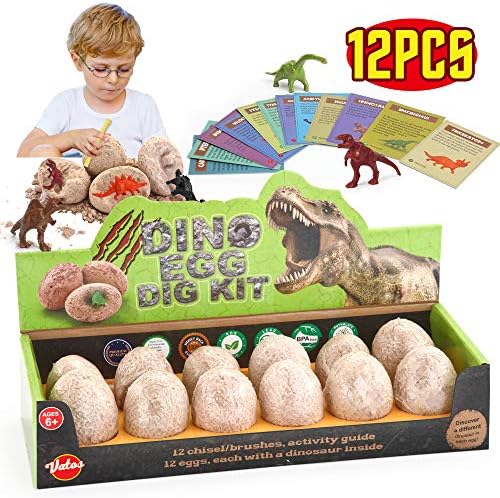 VATOS Dinosaur Eggs Dig Package 12 Pack,Uncover 12 Other Dinos, Easte…